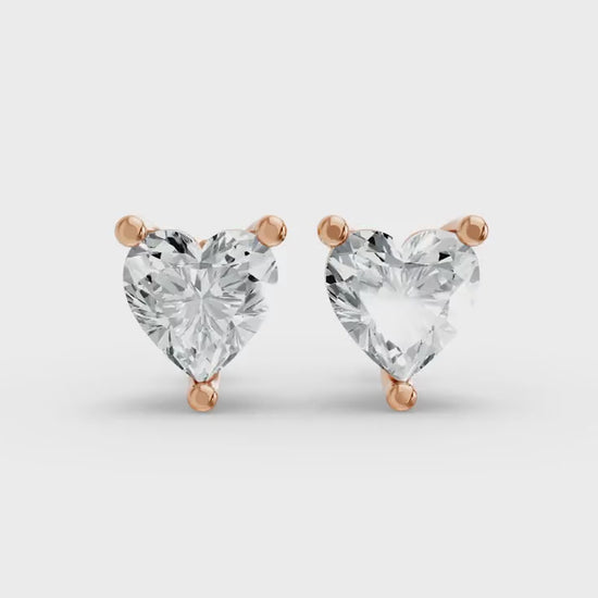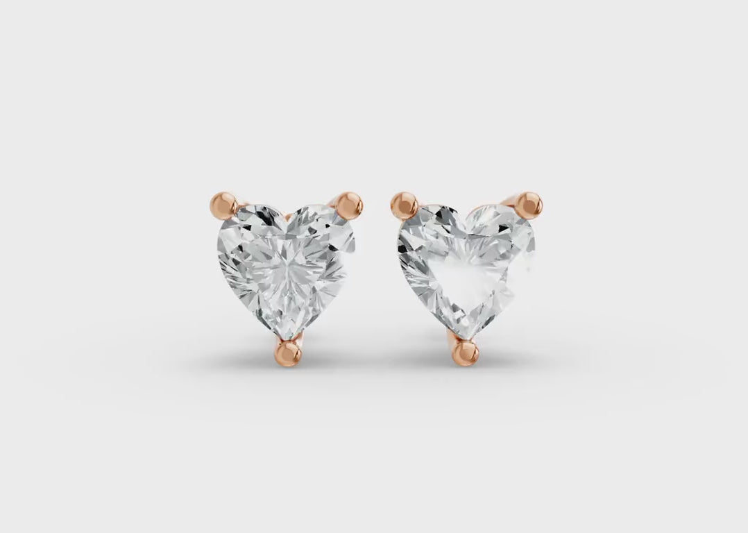 Heart Shape Lab Grown Diamond 3-prong Push-Back Studs in 925 Silver